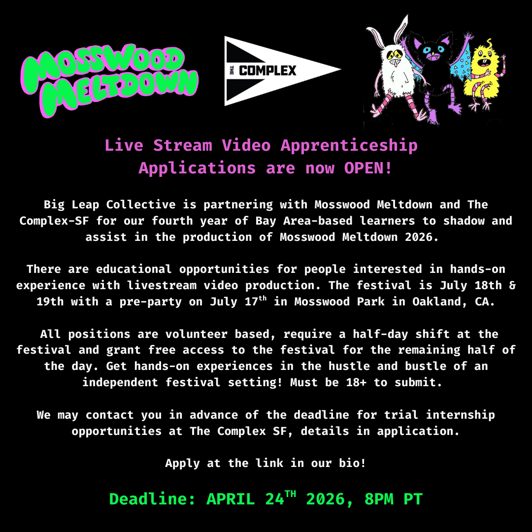 This program primarily focuses on creating lineups of different diverse Bay Area acts, as well as supporting independent touring artists with little to no financial backing, to bridge independent creative scenes through inclusive, primarily multimedia shows. This program benefits charitable causes, gets independent artists paid, offers internship experience to community members who are interested in working in the entertainment industry, offers retail opportunities to visual artists and vendors, and supports our local venues, cultivating the Bay’s rich and diverse arts and culture.